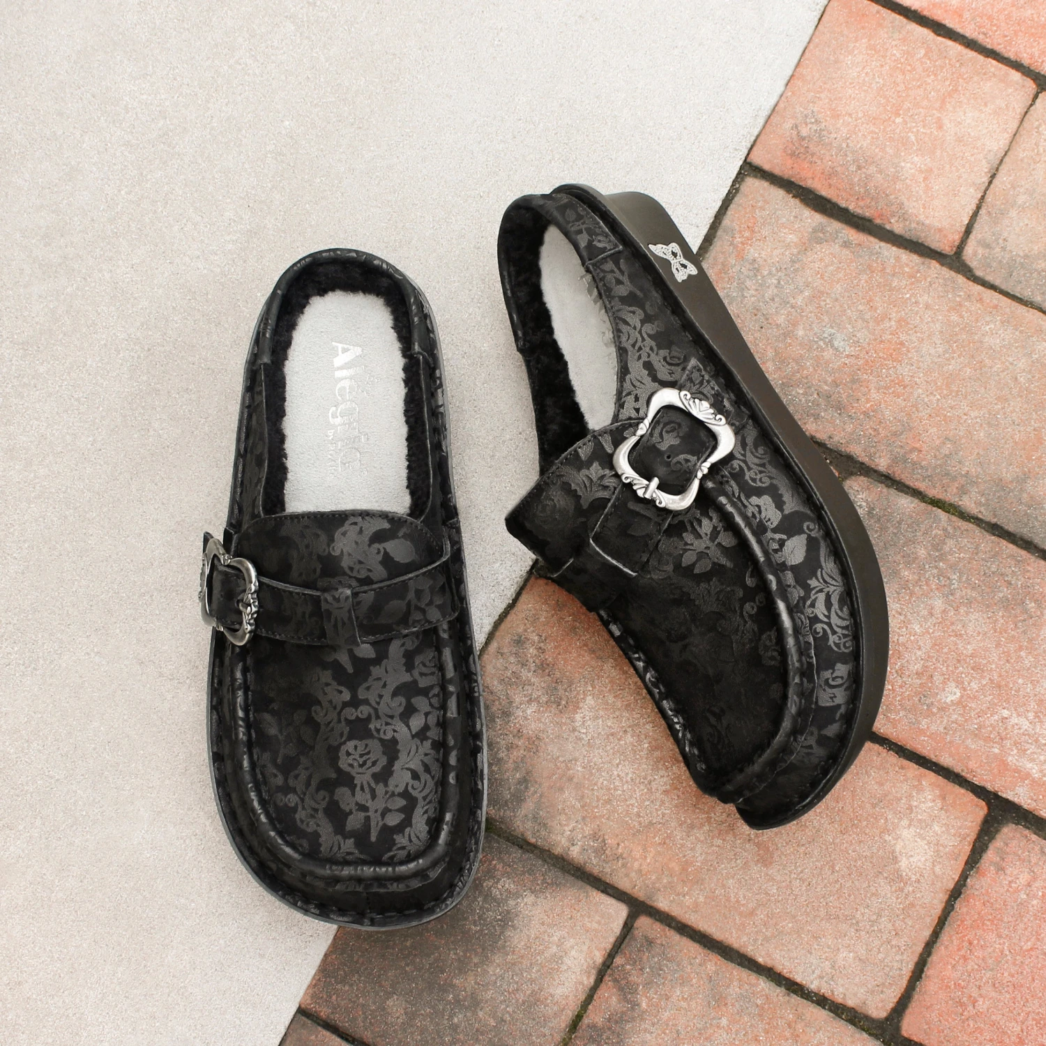 Slip on the Brigid with ease, featuring a semi open-back clog design with moccasin-style stitching around the roomy toe box. This clog is set on the Mini Outsole to promote even pressure distribution when in motion, and is outfitted with Alegria’s patented interlocking footbed for optimal cushioning and arch support. The classic styling is accented with an ornate adjustable buckle for a secure, customized fit.