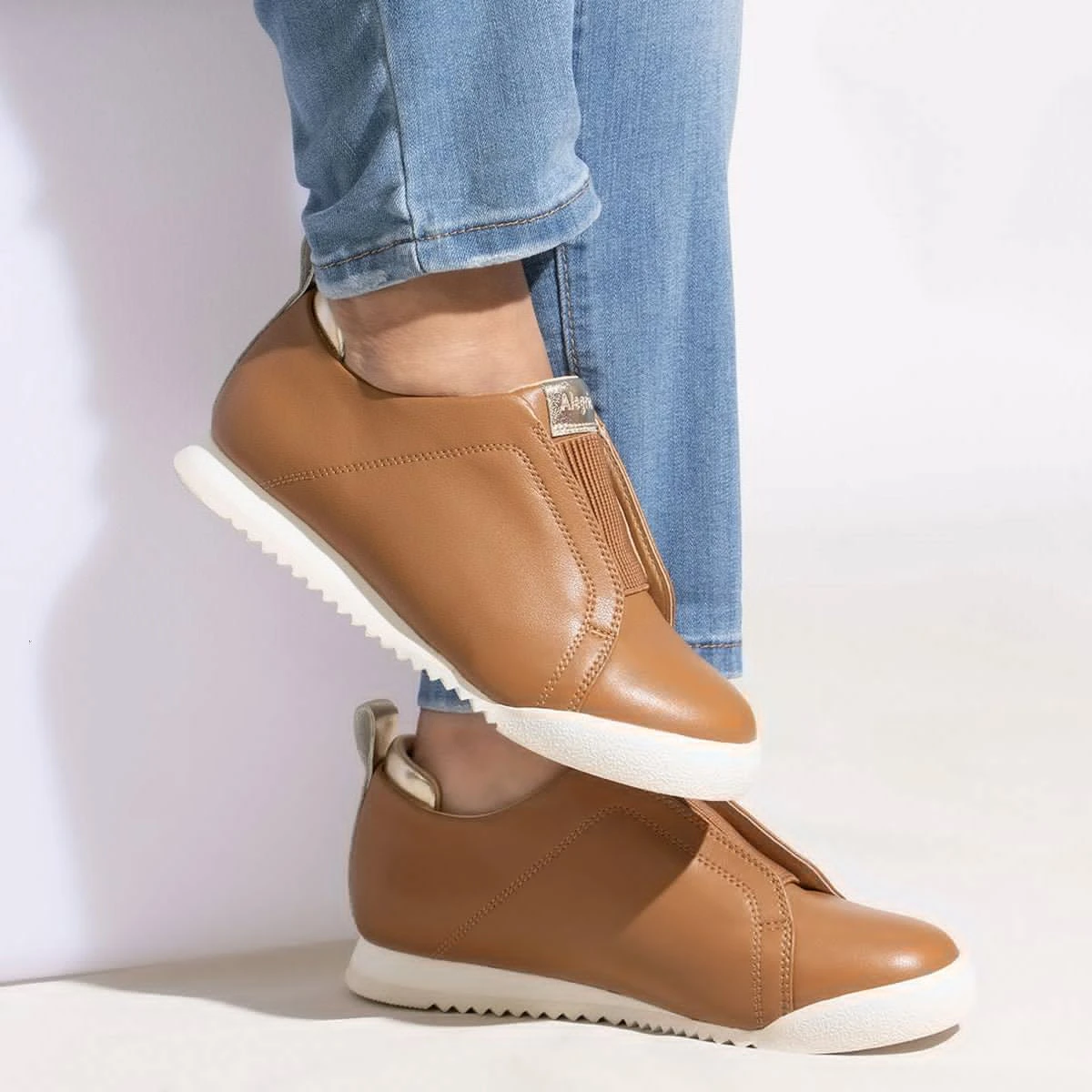 This comfort fashion sneaker is an athletic slip-on tennis shoes offering a perfect blend of style, comfort, and modern flair. The contrasting metallic leather accent details add a touch of sophistication and edginess, elevating the overall look. Whether paired with casual attire or dressed up for a more fashion-forward ensemble, these sneakers are designed to stand out.