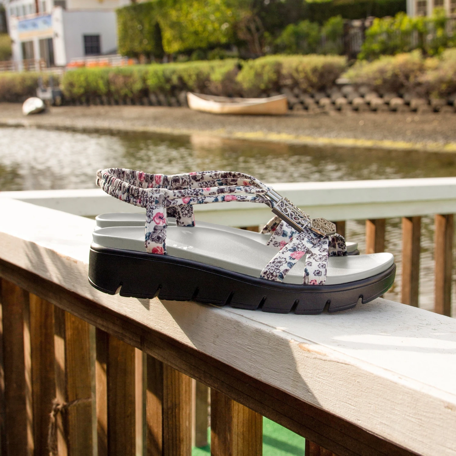 No need to compromise on fit with this Roz sandal detailed with functional ornamental hardware that adjust for a customized fit. A contoured footbed gently cradles the foot, while the lightweight heritage outsole combines comfort with ’70s flair.